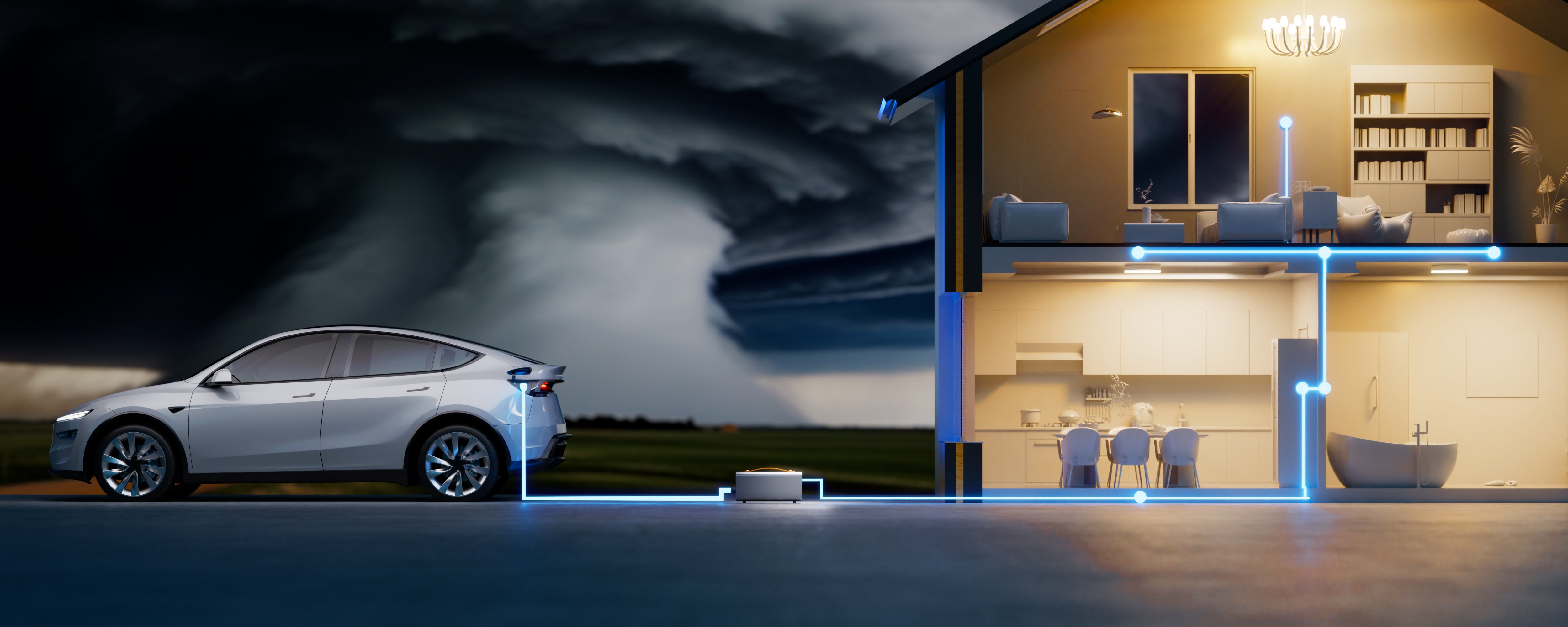 During natural disasters like cold fronts or hurricanes, maintaining a steady power supply for your home can be challenging. After all, most people don’t need to rely on expensive home energy storage systems year-round. In these situations, your Tesla becomes the ideal "mobile power station." Simply charge your Tesla at a Supercharger station in advance, then connect it to the F2 Discharge Device once you’re home. Even during a power outage, you can ensure that your home’s lighting remains on and essential functions continue to run smoothly.