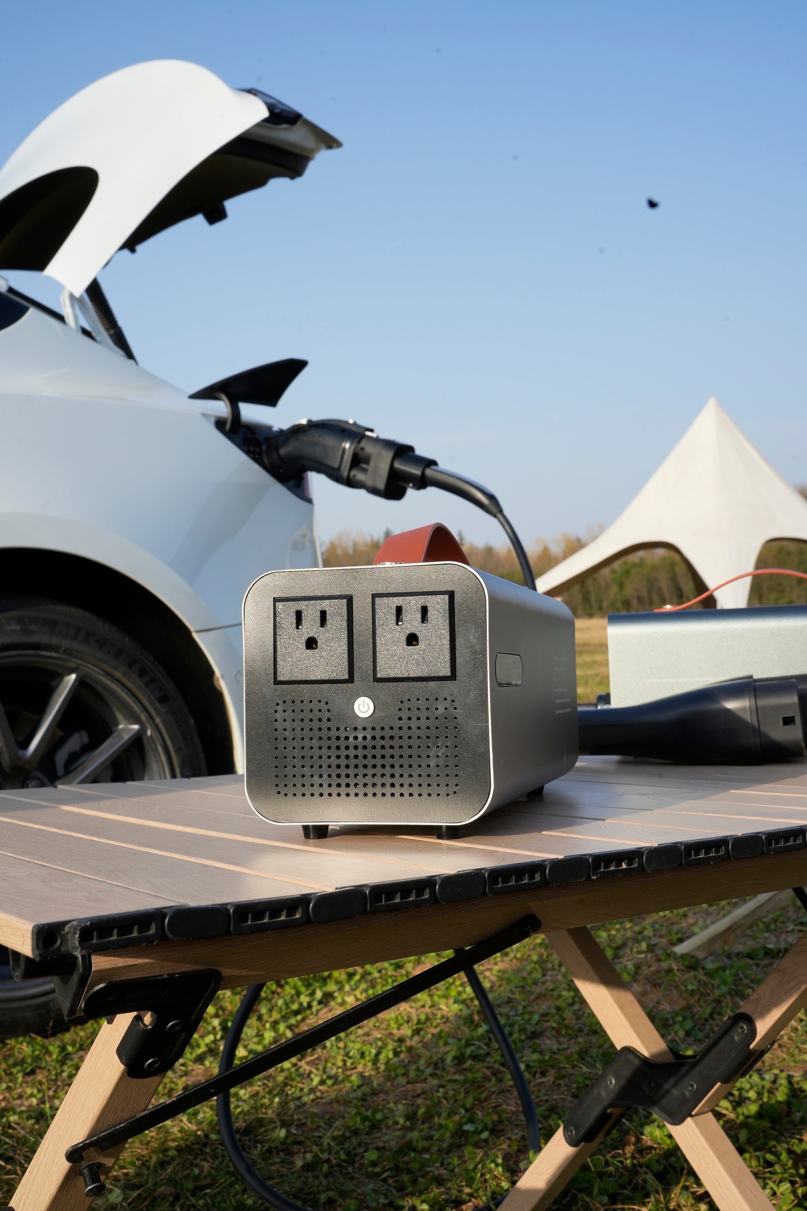 The F2 discharge unit delivers pure sine wave AC power through Tesla’s fast-charging port. While camping, it can power household appliances like coffee makers and induction cooktops. In outdoor construction settings, it supports industrial equipment such as electric saws and jackhammers. During road trips, it enables vehicle-to-vehicle charging if a companion’s car runs out of power. Back at home, the F2 can serve as an emergency power source during unexpected outages.